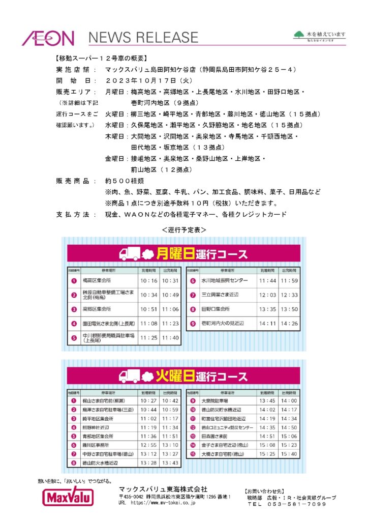川根本町ではスーパーに行くのが困難な方向けに移動スーパーが稼働しています。
